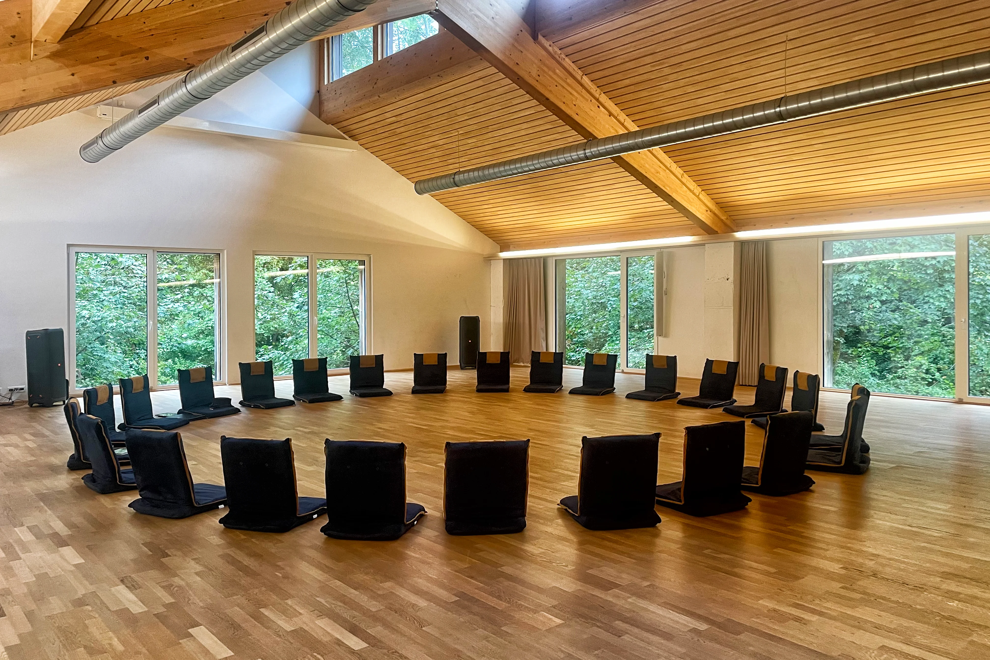 Die idealen Säle für kleinere Gruppen. Mit grossen Fenstern und viel Licht. Wenn du die Fenster öffnest, hörst du den Werenbach rauschen.